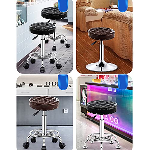 Adjustable Height Stool with 5 Wheels/Thicken Sponge Scratch Resistant Seat Chrome Steel PU Leather Bar Stool Shop Stool,Rolling Swivel Salon Stool,Massage Tattoo Co Brown(Brown)