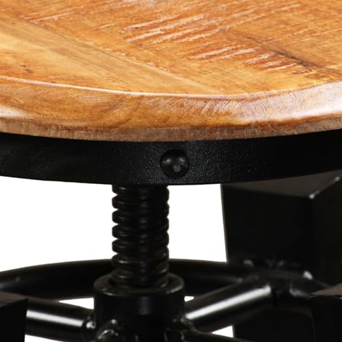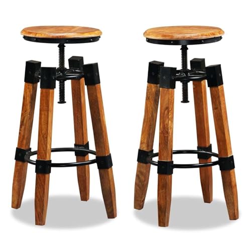 Industrial Style Height-Adjustable Wooden Bar Stools 2 pcs Solid Mango Wood for Home and Commercial Use