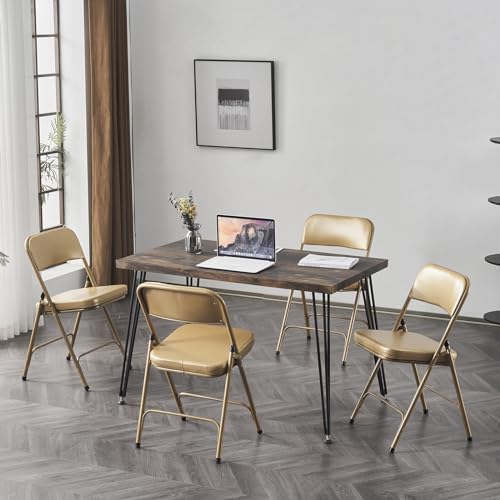 Metal Folding Chairs with Cushion - Foldable Chair with Padded Seat and Back - Indoor Outdoor Upholstered Commercial Seat - Event Chairs for Parties, Weddings, Home, Office - Set of 4 - Black