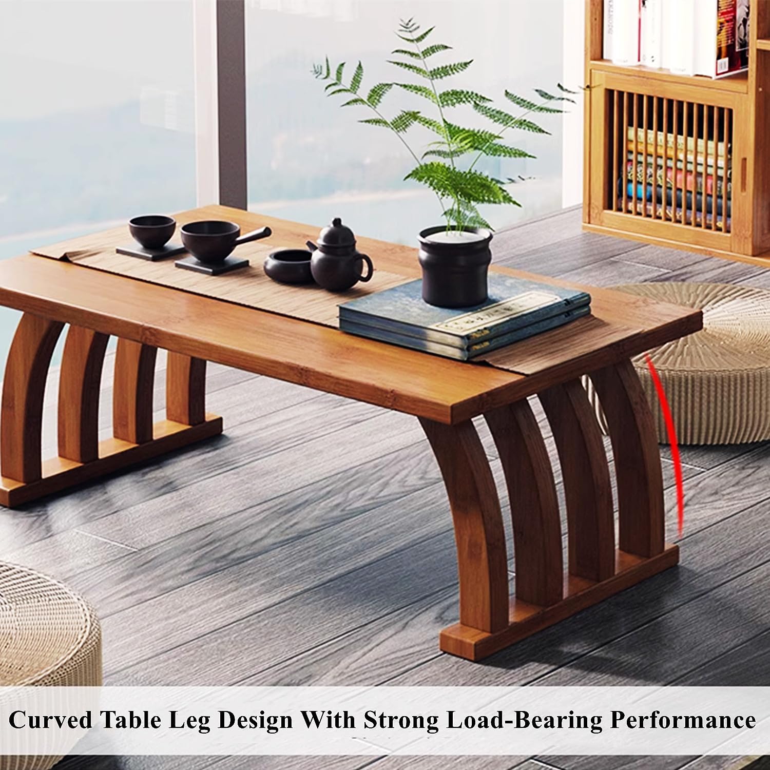 Portable Wooden Coffee Table Laptop Low Table Modern Farmhouse Side Table Japanese Floor End Table Rustic Natural Sofa and Console Table Home/Commercial