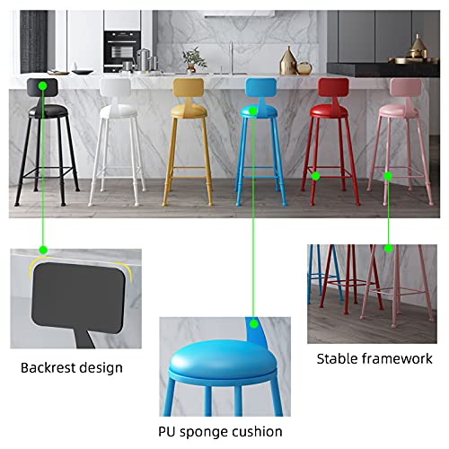 Breakfast Stool Bar Stools Set Height Fixed Kitchen Counter Bar Chairs with PU Round Padded Seat Barstools Metal Footrest for Home Commercial Bar Counter Stool