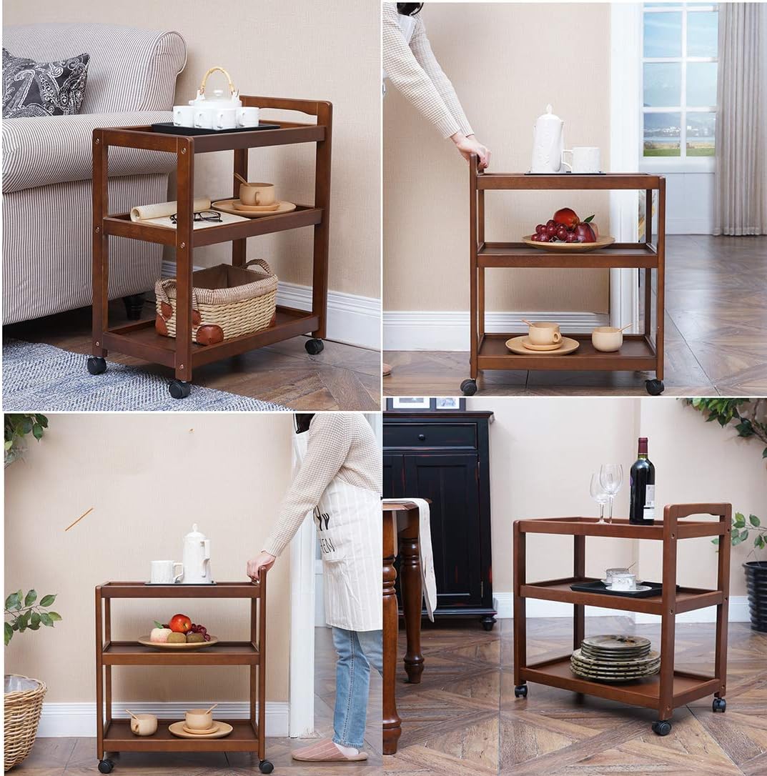 Bar Serving Carts Business Restaurant Wine Cart, Serving Cart Kitchen Trolley Commercial Home Kitchen Island Trolley with Wheels Handle Guard Rail -Solid Wood and Metal -3 Styles(C)