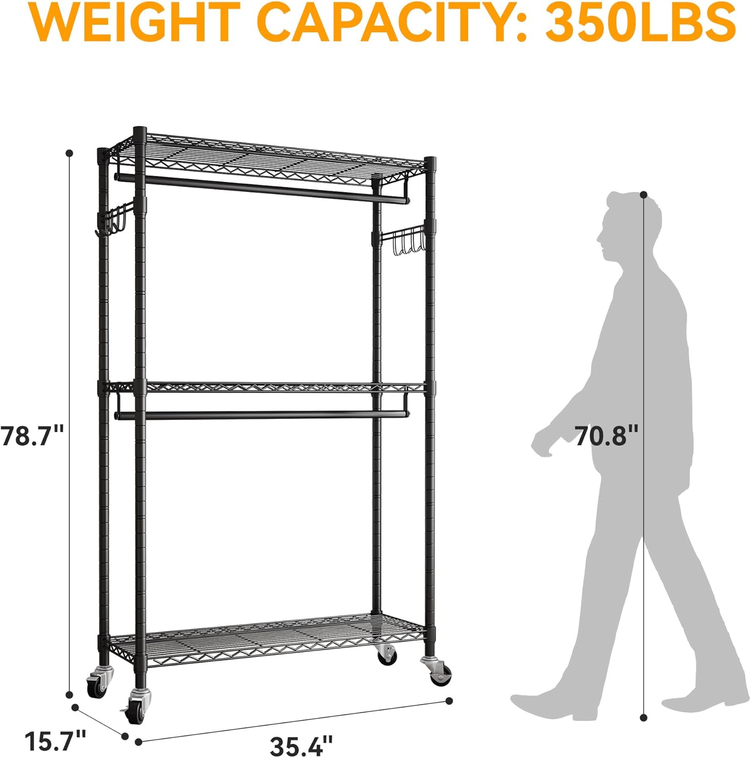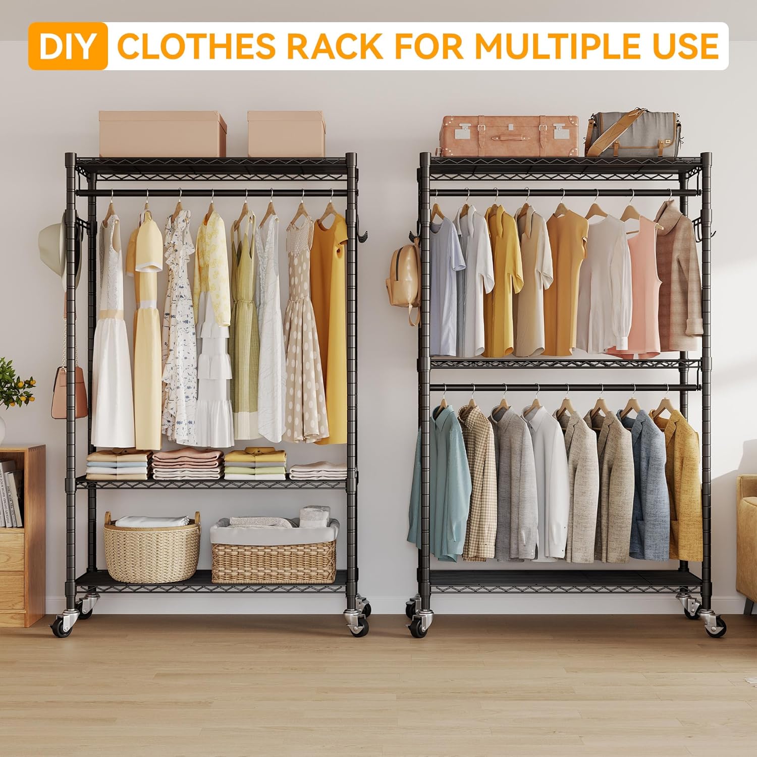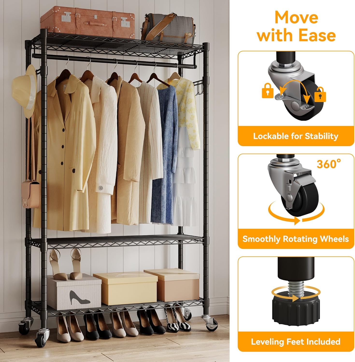 H5 Pro Heavy Duty Garment Rack & H2 Rolling Clothes Rack, Clothing Rack for Hanging Clothes,Wardrobe Closet, Black