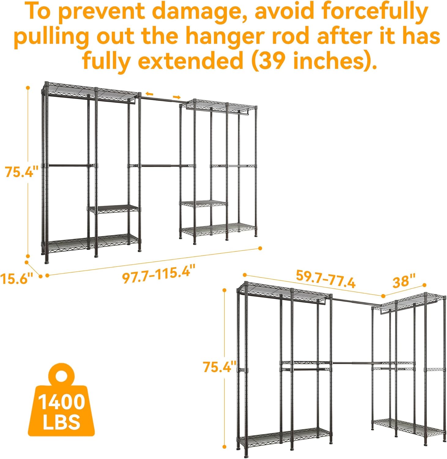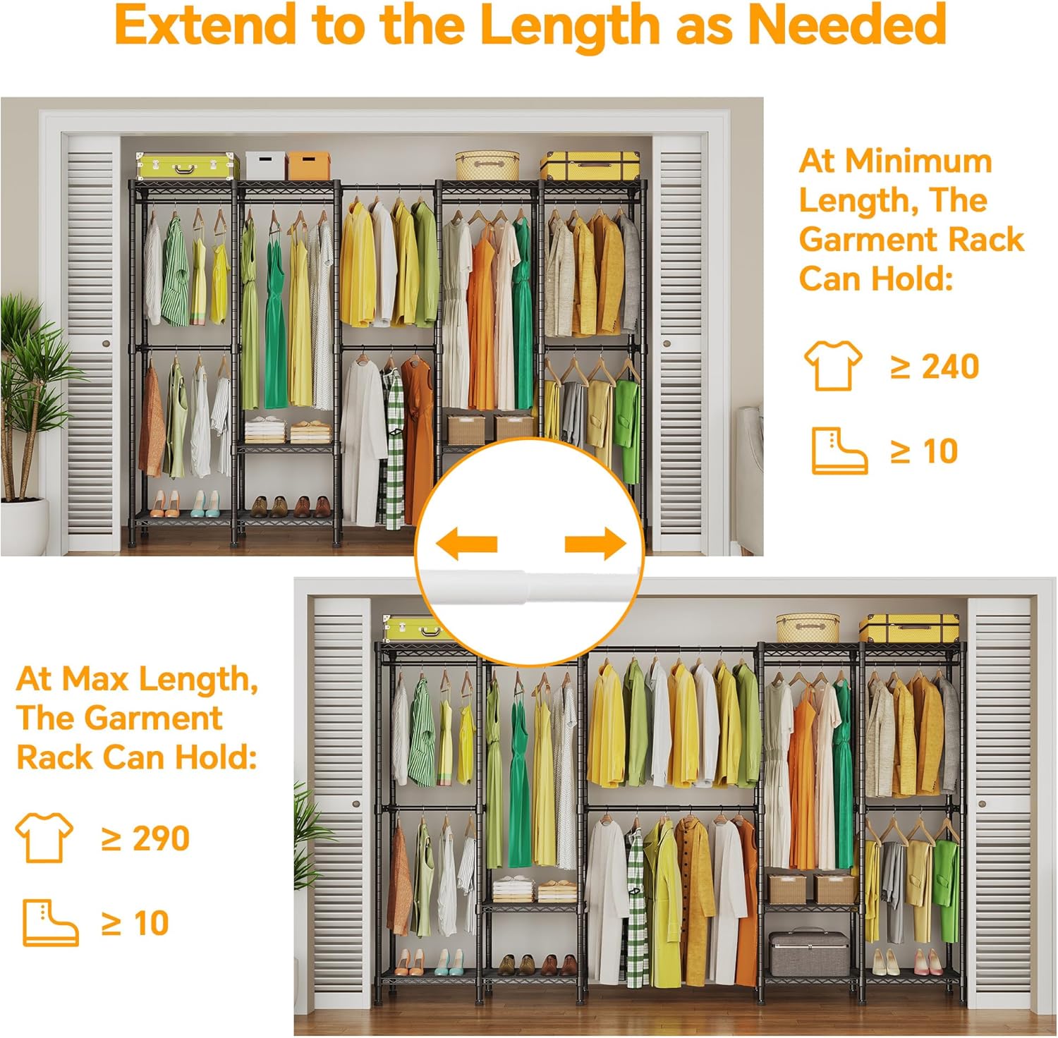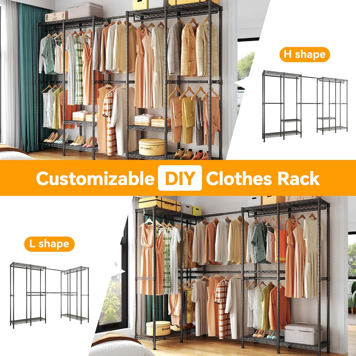 H5 Pro Heavy Duty Garment Rack & H2 Rolling Clothes Rack, Clothing Rack for Hanging Clothes,Wardrobe Closet, Black