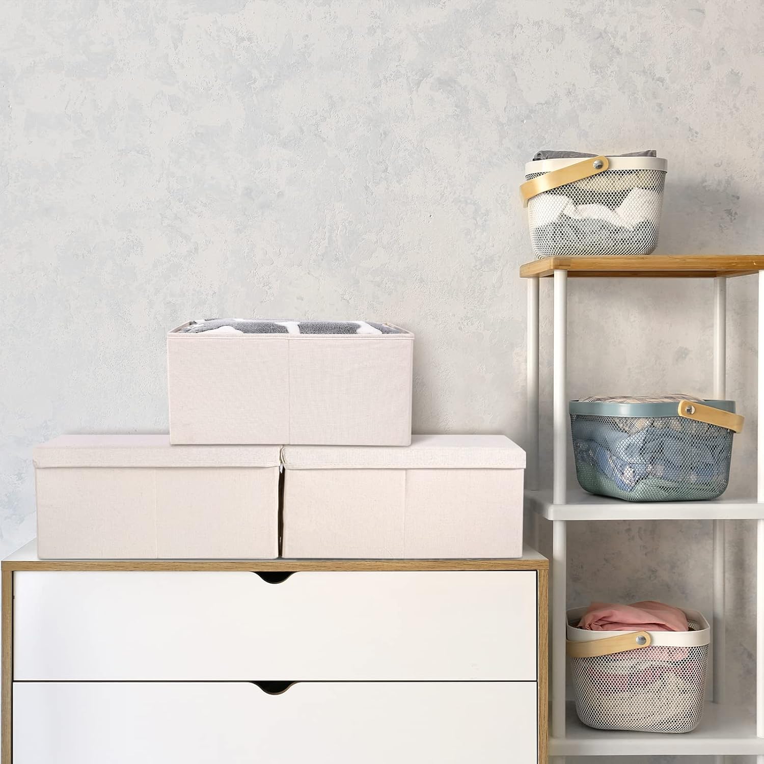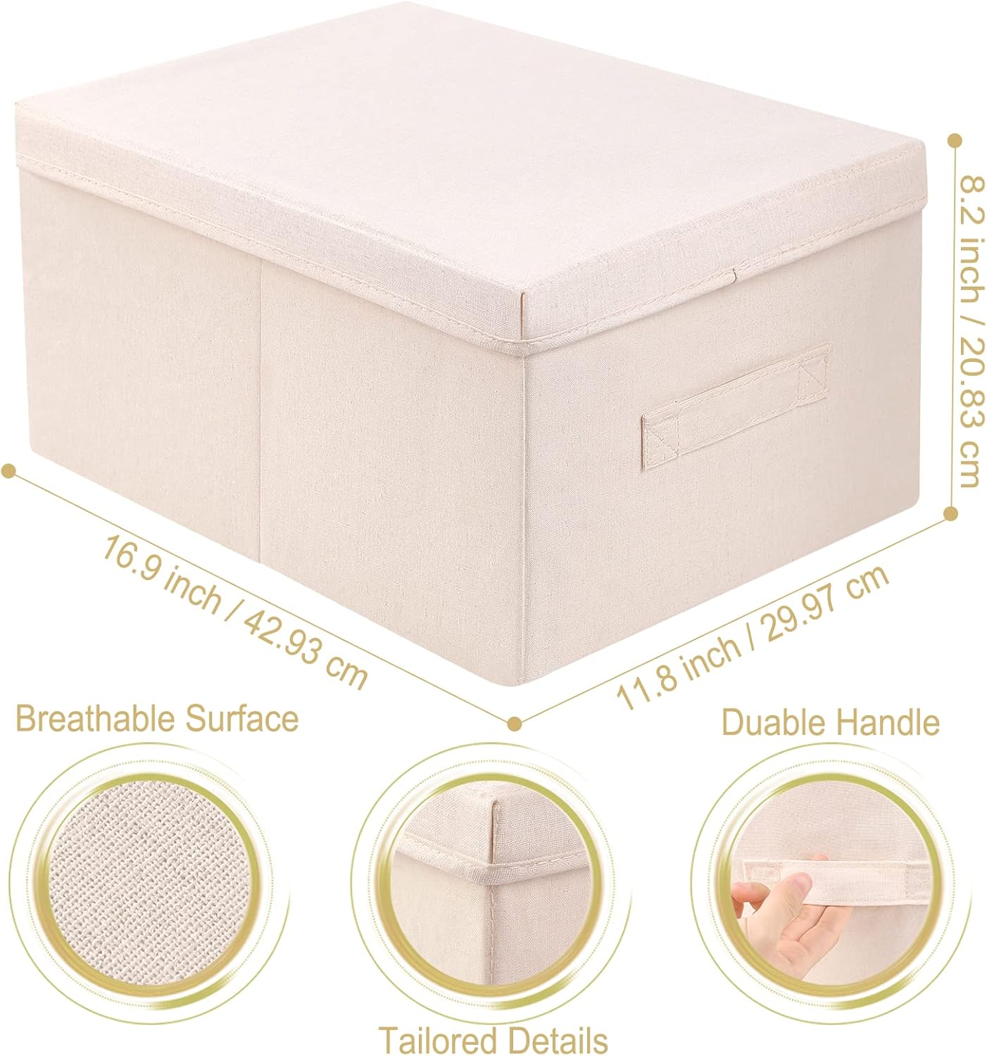 Vailando Storage Bin 3pck Large Fabric Storage Bin with Lids Decorative Storage Boxes 3-Pack Large Canvas Comforter Storage Bags Closet Organizer for Clothes