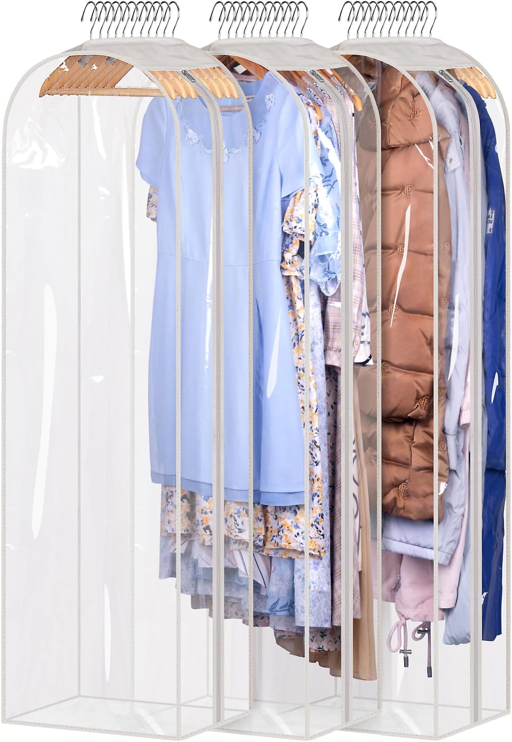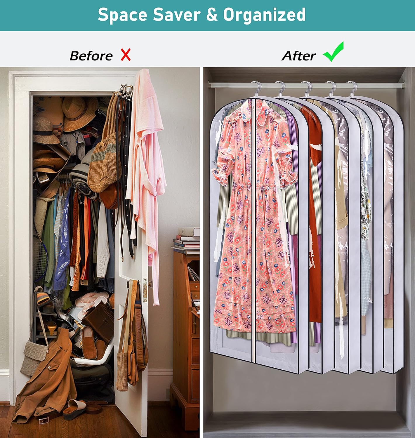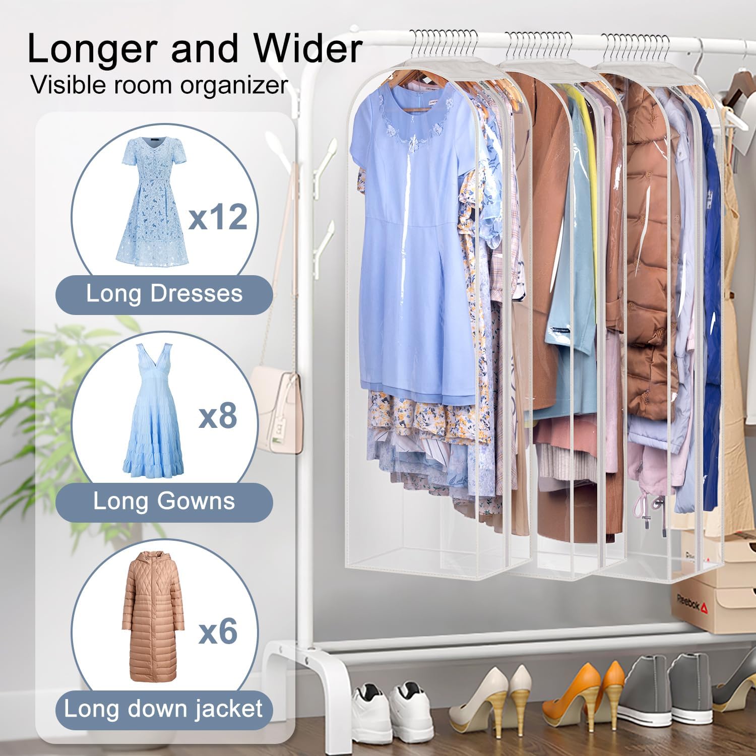 SLEEPING LAMB 60'' Long Hanging Garment Bags for Closet Storage Gusseted Clear Dress Bag for Clothes, Gowns, Coats, Suits, 10" Gusseted Dress Garment Bags 60" Clear Hanging Clothes Storage Long Gown B