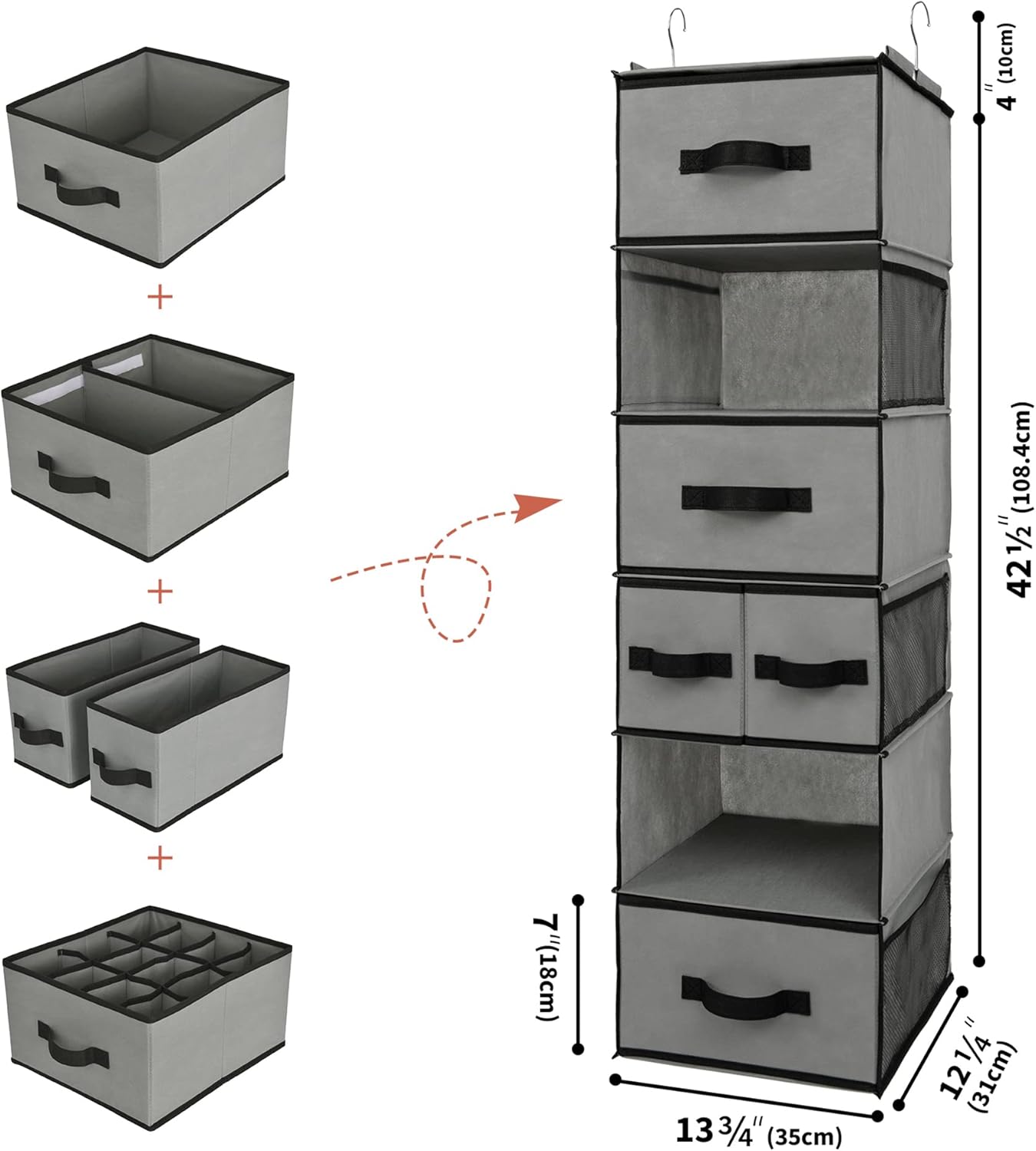StorageWorks Toy Storage Organizer with Flip-Top Lids with 6-Shelf Hanging Closet Organizers, Two 3-Shelf Separable Closet Hanging Shelves, 12" D x 12" W x 48 3⁄4" H