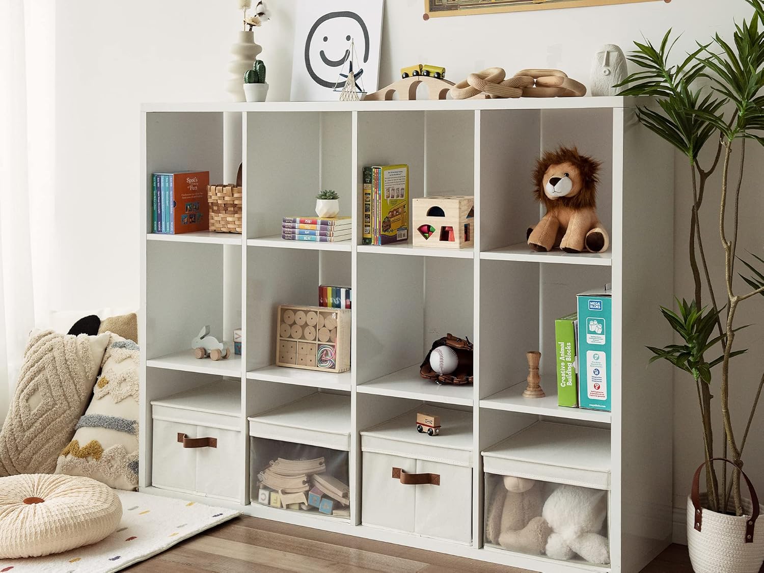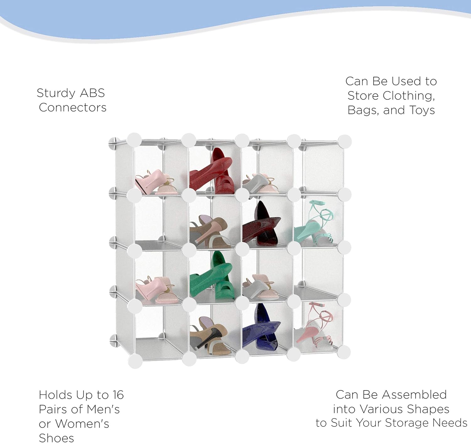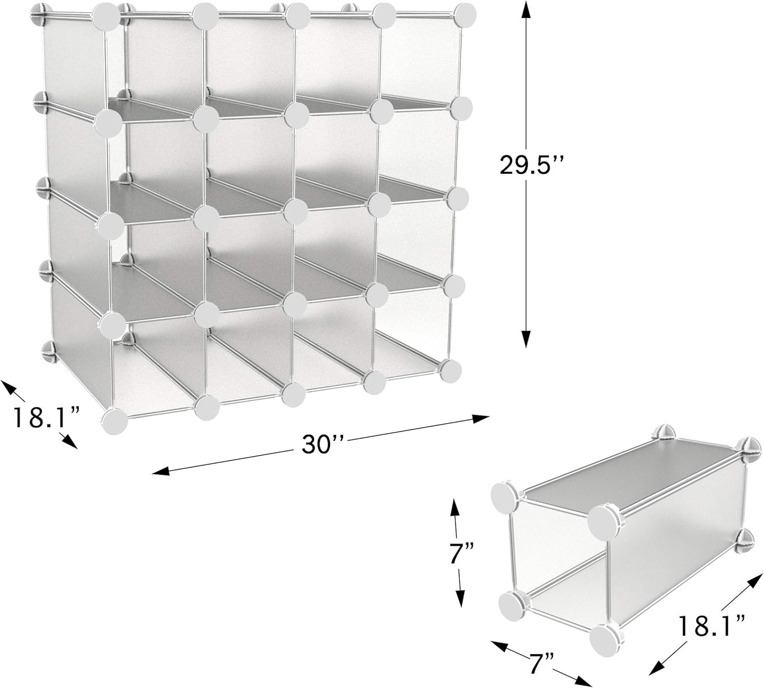 Lavish Home Piece 16 Cube Interlocking, Customizable, Stackable Modular Cubby Shelving for Organization and Storage (White), (L) 30” x (W) 18.1” x (H) 29.5