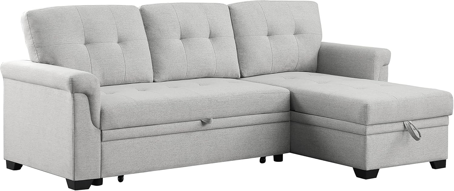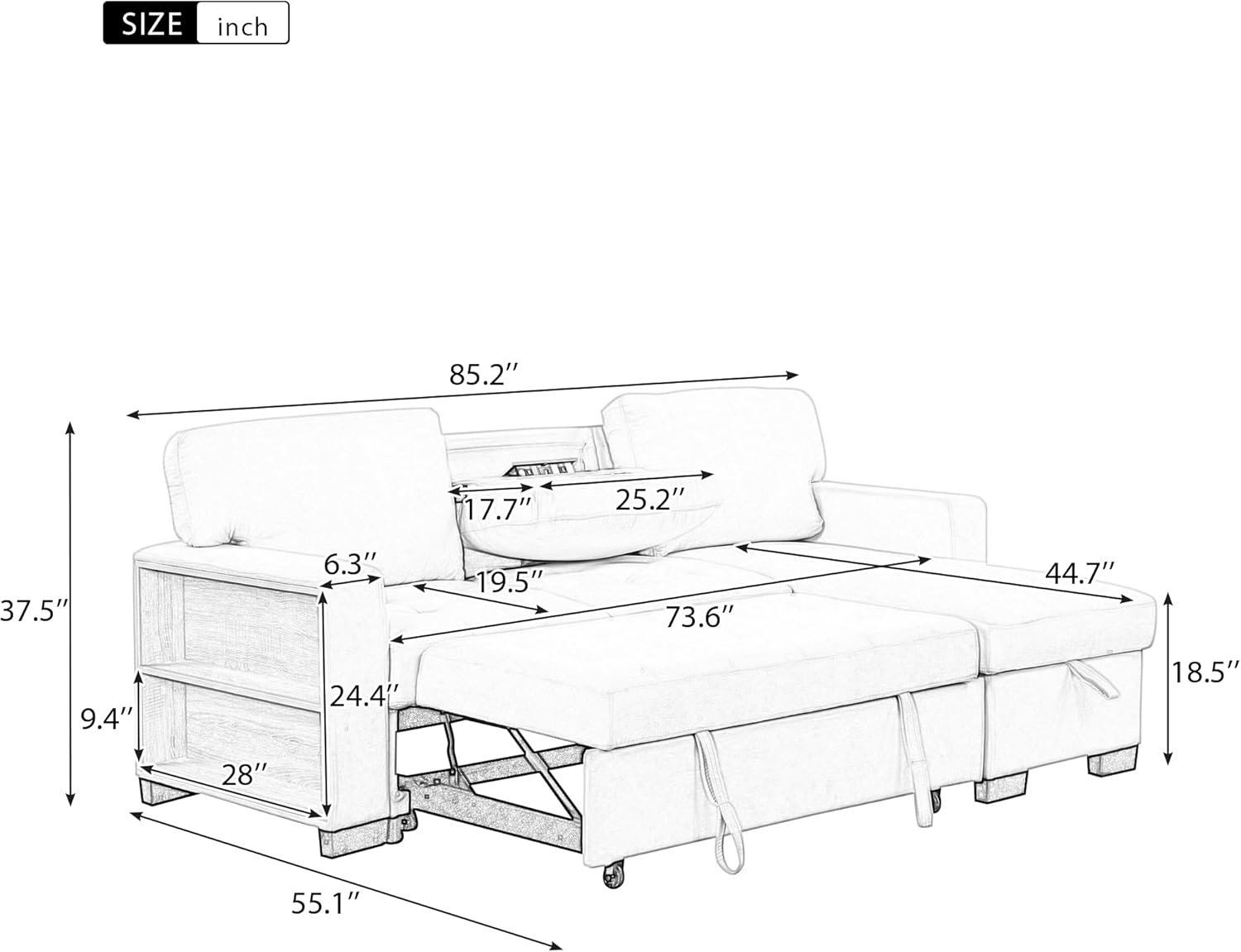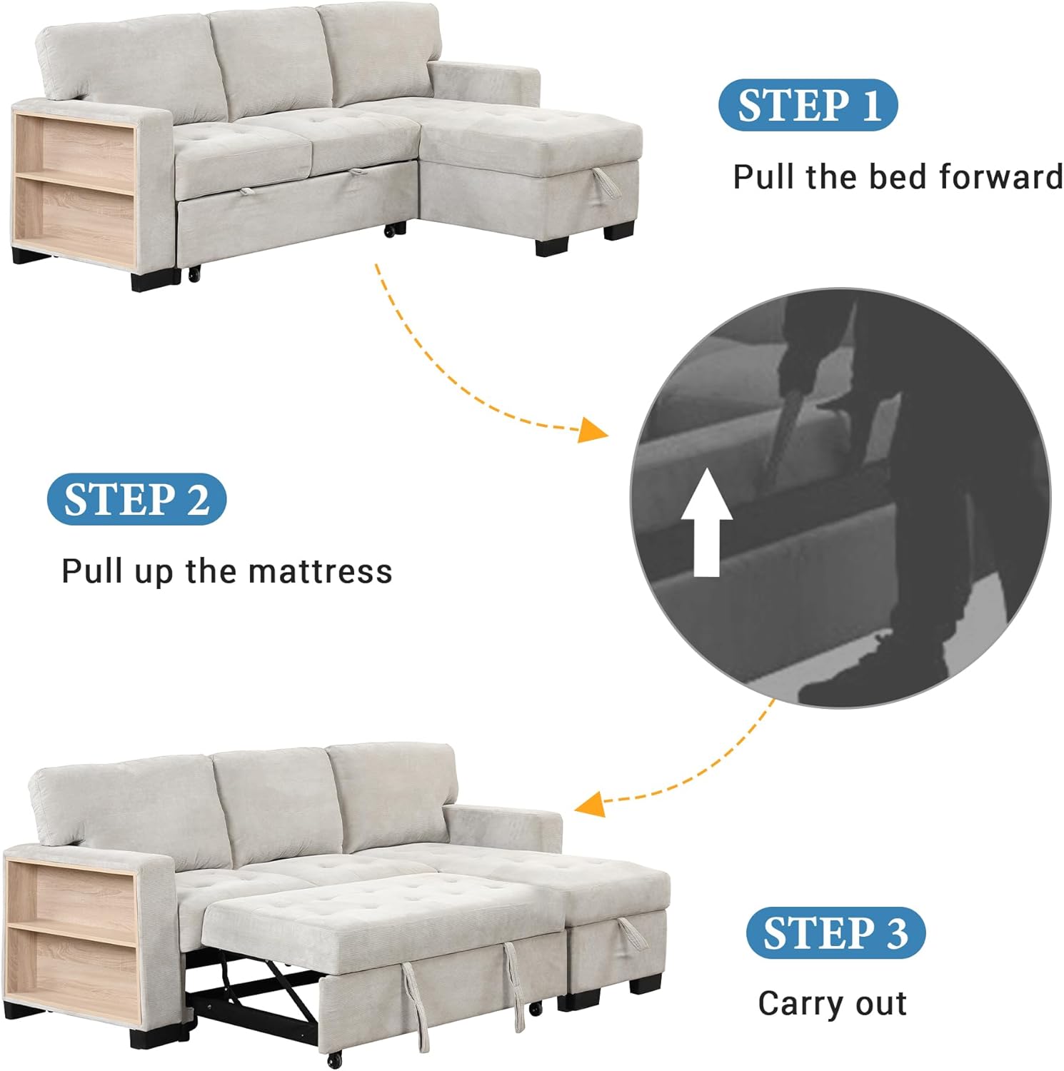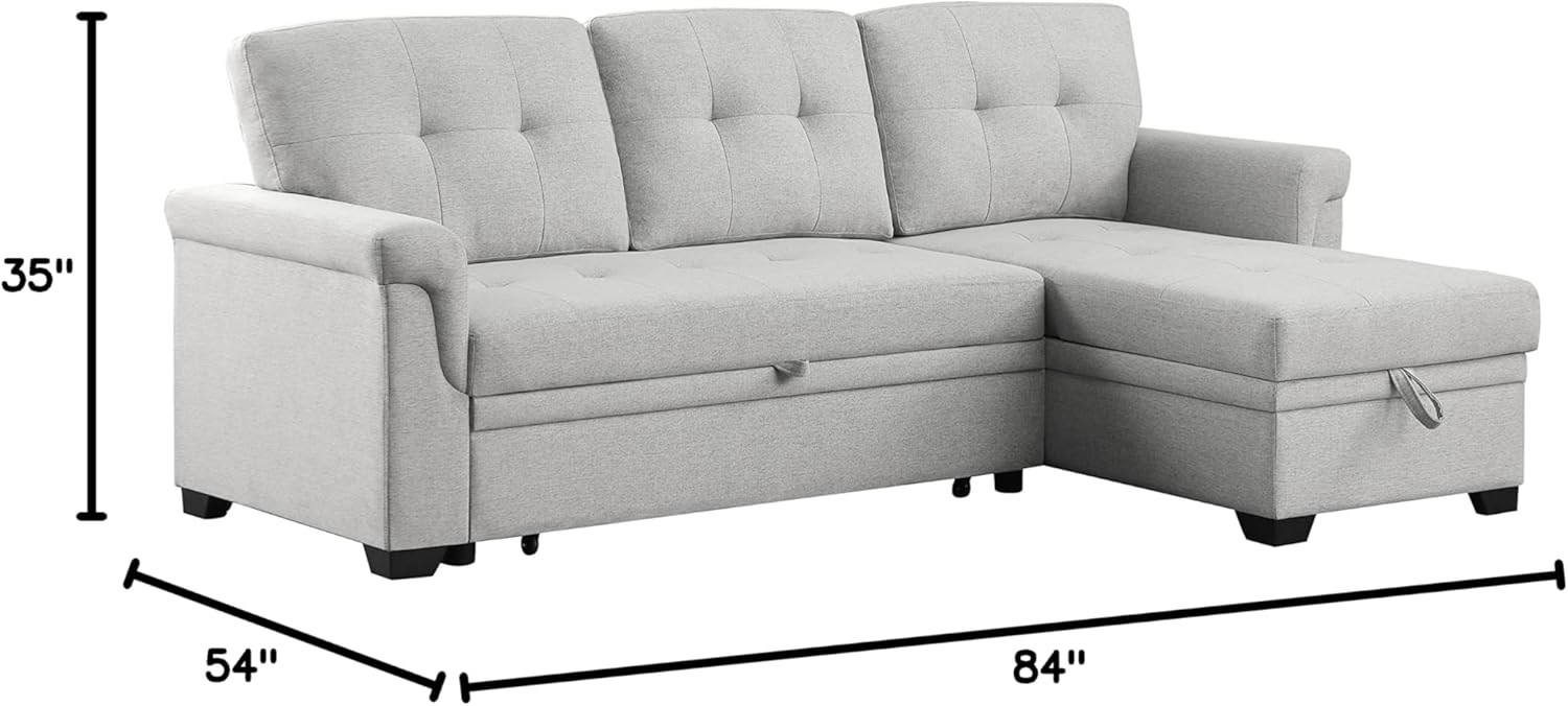 Modern Convertible Sectional Couch with Reversible Storage Chaise,84" Upholsterd Linen Pull Out Sleeper Sofa Bed,L-Shaped Corner Sofá for Living Room Apartment Office Small Space Furniture Sets
