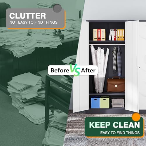 Letaya Metal Wardrobe Cabinets with Lock,Clothing Locker 72" X 36" X 18" Storage Cabinets for Home Room,Fire Department, School, Employee,Gym,Government (White)