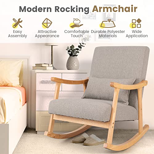 Giantex Upholstered Rocking Chair Set of 2 - Modern Rocker with Rubber Wood Frame, Comfy Backrest & Seat, PP Padded Pillow, Single Rocking Chair for Living Room, Nursery, Bedroom, Lounge, Office