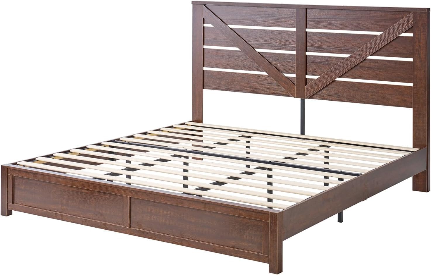 King Size Farmhouse Bed Frame with 49.2" Barn Door Headboard, Platform Bed Frame with Slats, Under Bed Storage Space, Noisy Free, Easy Assembly, Reclaimed Barnwood Bed Frame