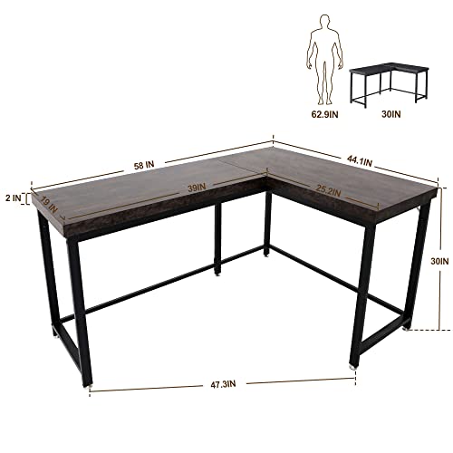 ivinta L Shaped Computer Desk Small Corner Desk Reversible Gaming Desk for Small Space, 2" Thicken Desktop (Walnut)…