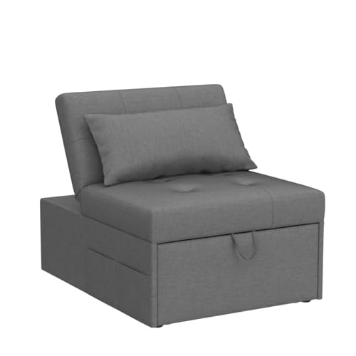 Cozy Castle Sleeper Chair, Convertible Chair Bed, 4 in 1 Ottoman Bed, Pull Out Sofa Bed, Linen Fabric Chaise Lounge, for Living Room/Small Apartment, Dark Grey