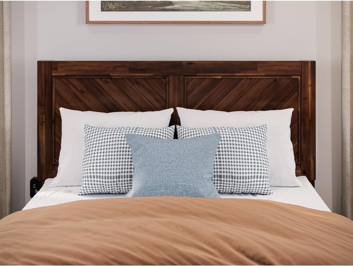 AFI, Berkshire Queen Solid Wood Low Profile Platform Bed with Matching Footboard, Walnut