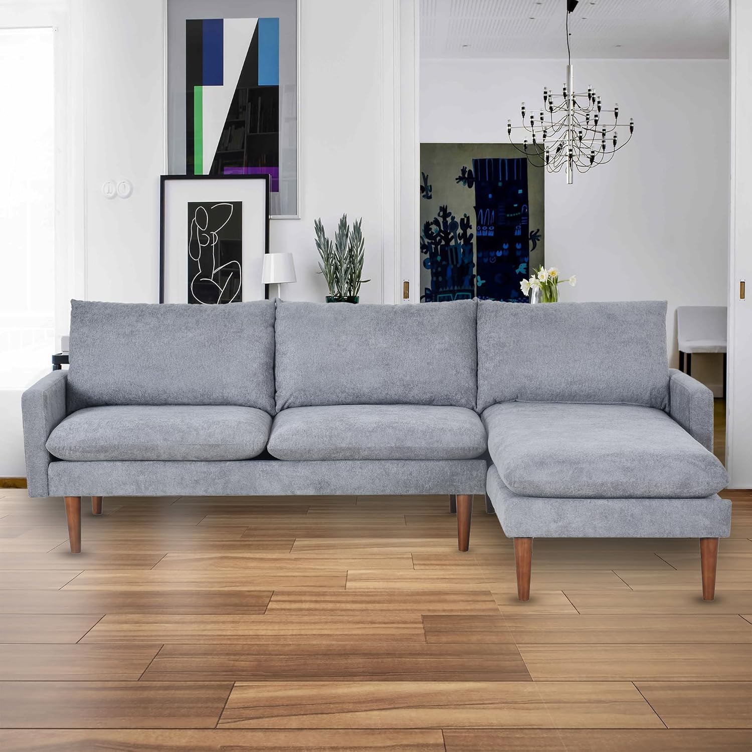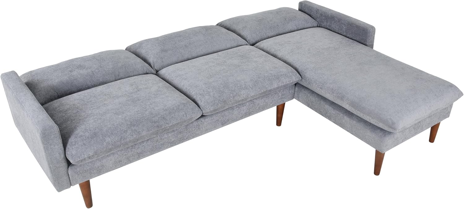 Furniture Sets L-Shaped Couch 86" W Mid Century Velvet Upholstered 3-Seat Sofa Bed with Reversible Chaise for Bedroom Apartment,Office,Small Place,Living Room,Grey, Gray