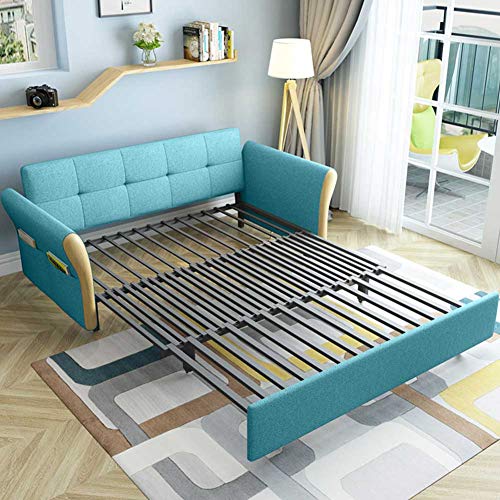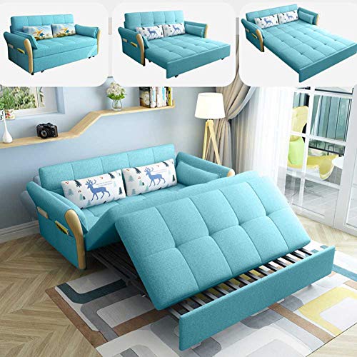 Convertible Sectional Sofa L-Shaped Couch Modern Fabric Reversible Sofa Couch with Pull Out Bed Storage ottman for Small Space Sky Blue 1.66m (1.46m)