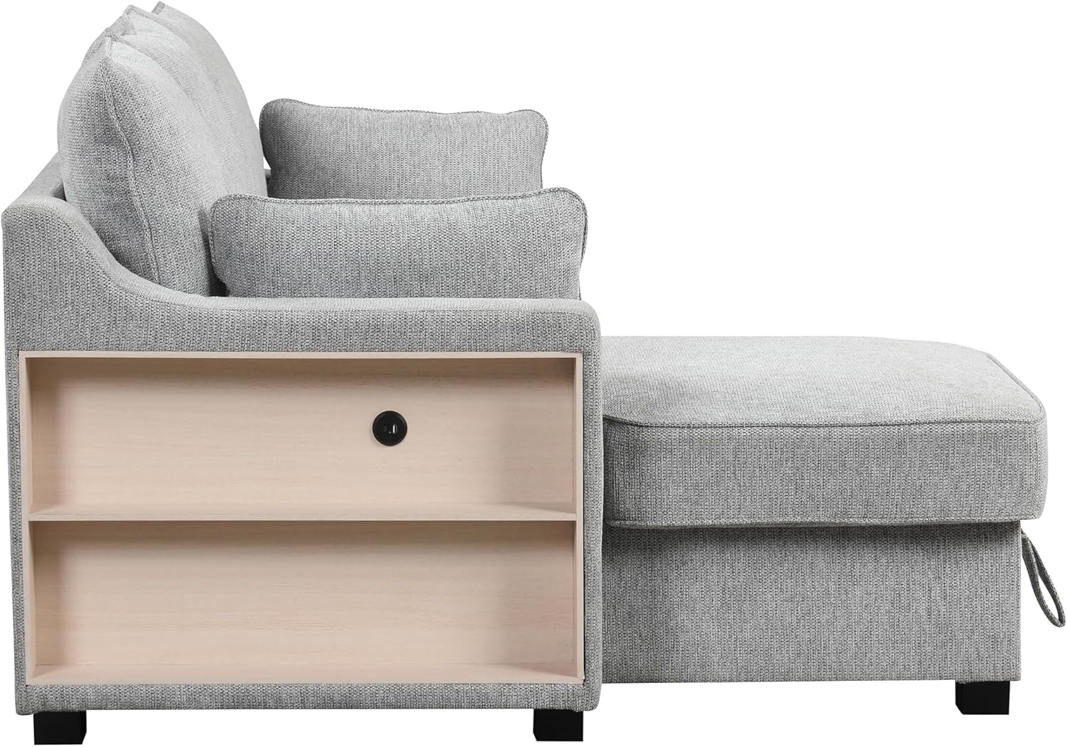 90" Sleeper Sofa with Pull Out Bed, L-Shaped Convertible Couch with Reversible Chaise, Storage Racks and USB Ports for Small Space, Living Room Furniture, Light Gray
