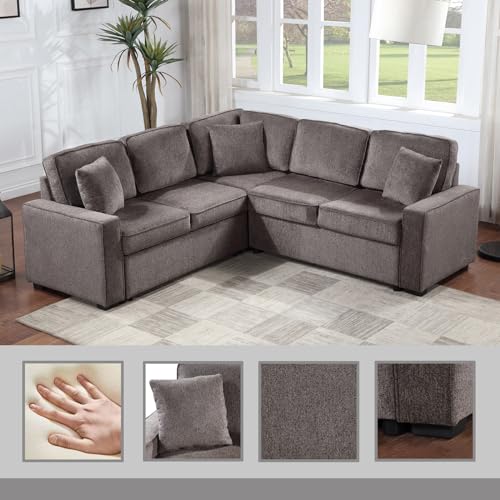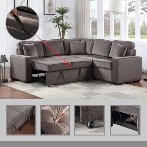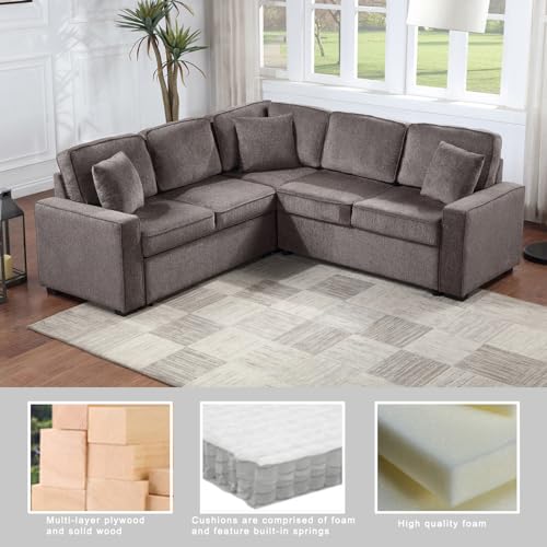 Sectional Sleeper Sofa with Pull Out Bed, 5-Seat L-Shaped Couch, Modern Chenille Corner Sofa with 3 Cushions for Living Room Small Space Apartment