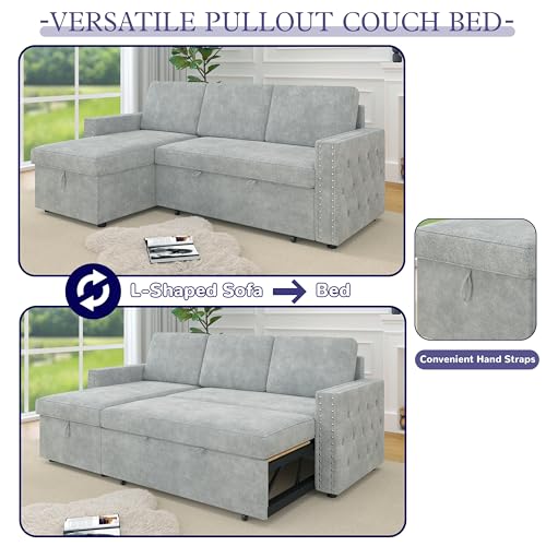 78.75" Convertible Sectional Sofa with Pull Out Bed, 3-Seat L-Shaped Couch with Storage Chaise, Sleeper Sofa Bed for Small Space Apartment, USB/Type-c Charging Ports, Light Grey