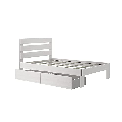 Max & Lily Modern Farmhouse Bed with Plank Headboard and Storage Drawers, Full, Driftwood