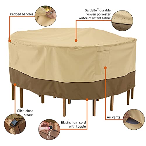 Classic Accessories Veranda Water-Resistant 60 Inch Round Patio Table & Chair Set Cover, Outdoor Table Cover