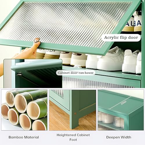 Bamboo Shoe Storage Cabinet with Flip Doors, 10 Tier Freestanding Shoe Rack for 40-45 Pairs, Entryway Shoe Cabinet for Hallway Office Living Room (Grey)