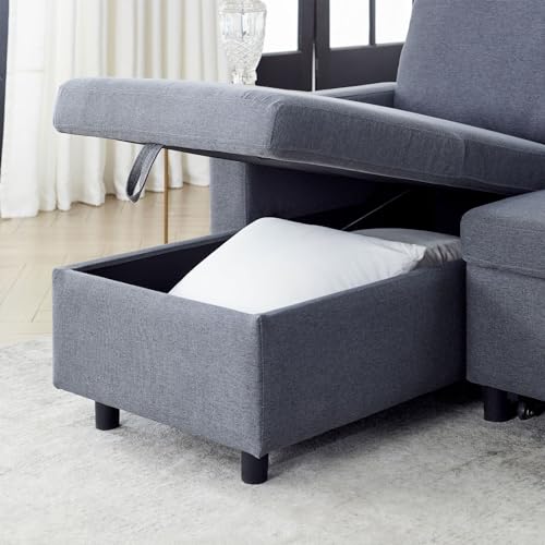78.7" Inch Comfortable Linen L-Shaped Combined Sofa Bed, Living Room Furniture Set with Small Space, Reversible Sofa Bed with Folding Bed, Reversible Sofa Bed for Living Room,Apartment,Dark Gray