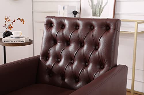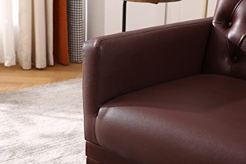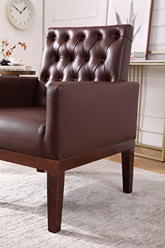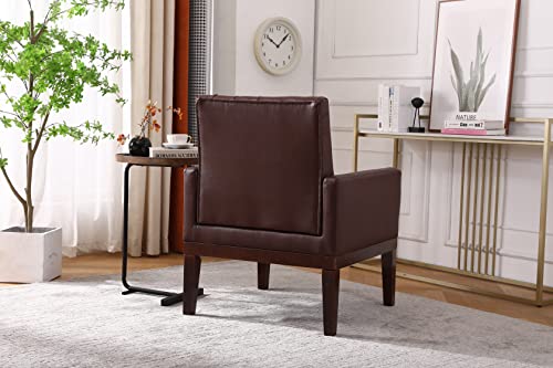 Mid-Century PU Leather Accent Chair, Upholstered Lounge Single Sofa with Oak Wood Frame and Wooden Legs in Log Color, Modern Button Reading Chair for Bedroom Living Room (Light Green)