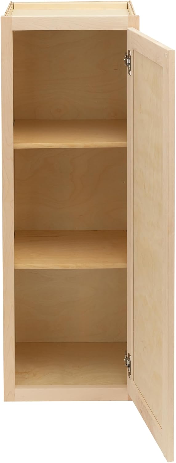 Quicklock RTA (Ready-to-Assemble) 42" Tall Wall Kitchen Cabinets - Shaker Style | 100% Hardwood | Made in America | Soft Close Hardware (Raw Maple, 12" D x 18" W x 42" H)