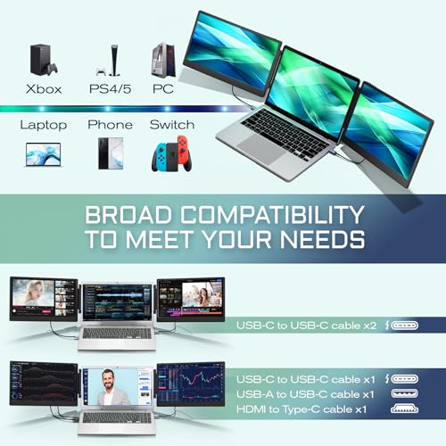 Teamgee 14.2" Portable Monitor, FHD IPS Laptop Screen Extender with 90° Foldable Stand/Dual Speakers, HDMI/USB-A/Type-C Plug and Play for 13”-17” Laptops Remote Work, Fits Wins, Mac, Chrome, Switch