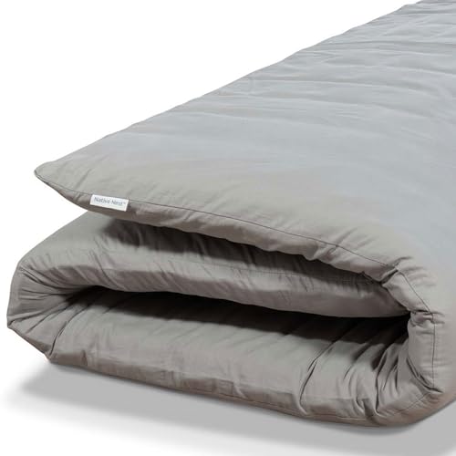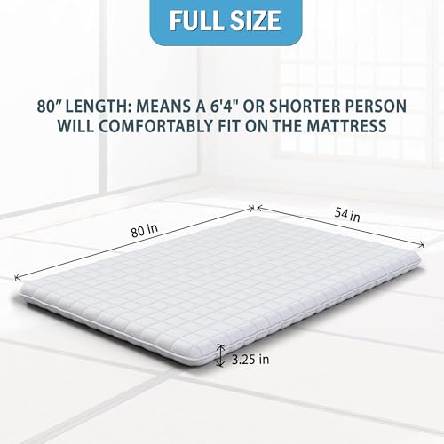 Japanese Futon Floor Full Mattress, Medium Futon Mattress for Adults, Shikibuton, Foldable & Portable Bed with Premium Cotton Cover, Grey