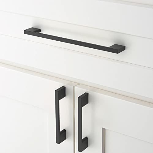 Amerdeco 10 Pack Matte Black Cabinet Pulls 5 Inch Hole Centers, 6 Inch Length Handles for Kitchen Cabinet Hardware,Solid Cabinet Handles for Bathroom Drawer Handles IH0005…
