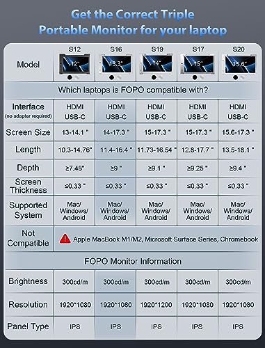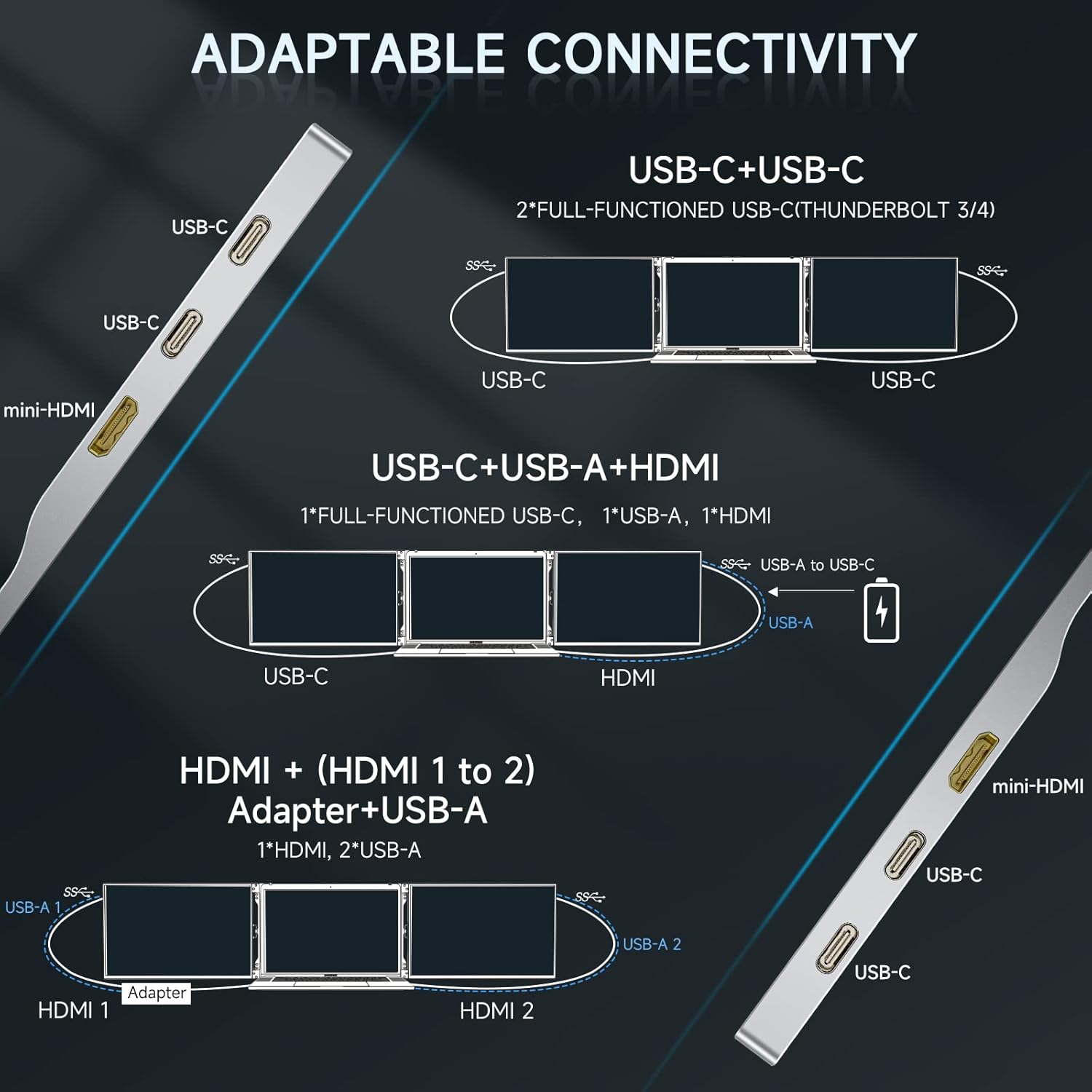 FOPO 13.3" Triple Laptop Screen Extender FHD 1080P IPS Triple Portable Monitor for 14"-17.3" Laptop, Triple Screen for Dual Screen Display, with HDMI/USB-C -S16