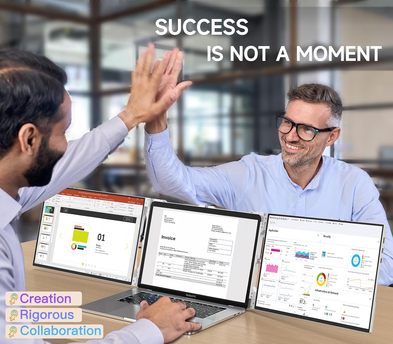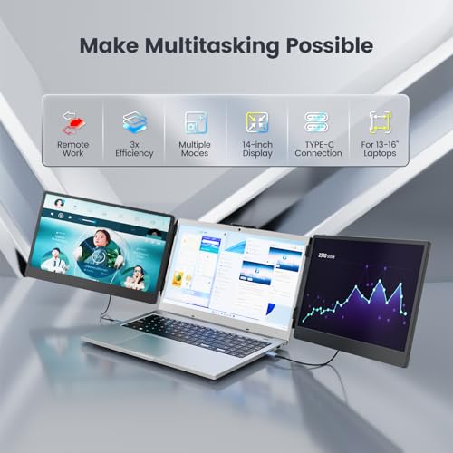 L LIMINK LK14 Portable Triple Monitor for 13-16" Laptop, 14" 1200P IPS Triple Screen Laptop Monitor Extender, Triple Screen Laptop Monitor extender with USB-C & HDMI Port, Compatible Mac & Wins