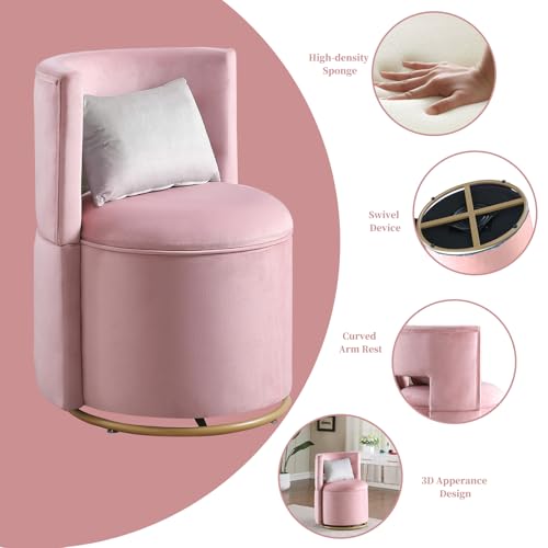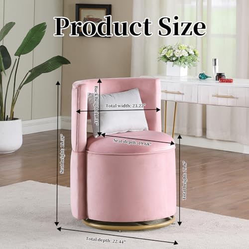 360° Swivel Accent Chair with Storage,Modern Curved Chair with Velvet Pillow,Gold Metal Base for Living Room, Study Room, Bedroom (Gray)