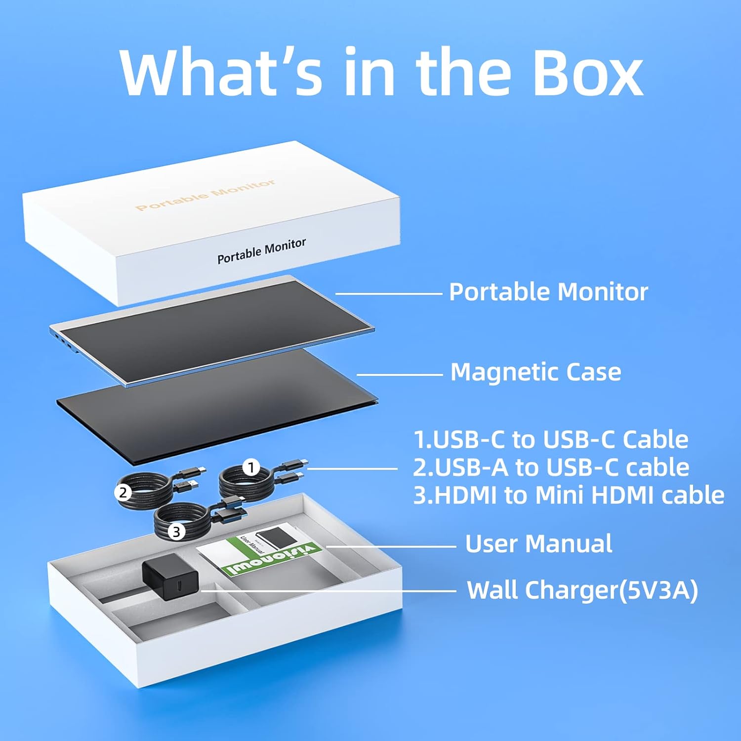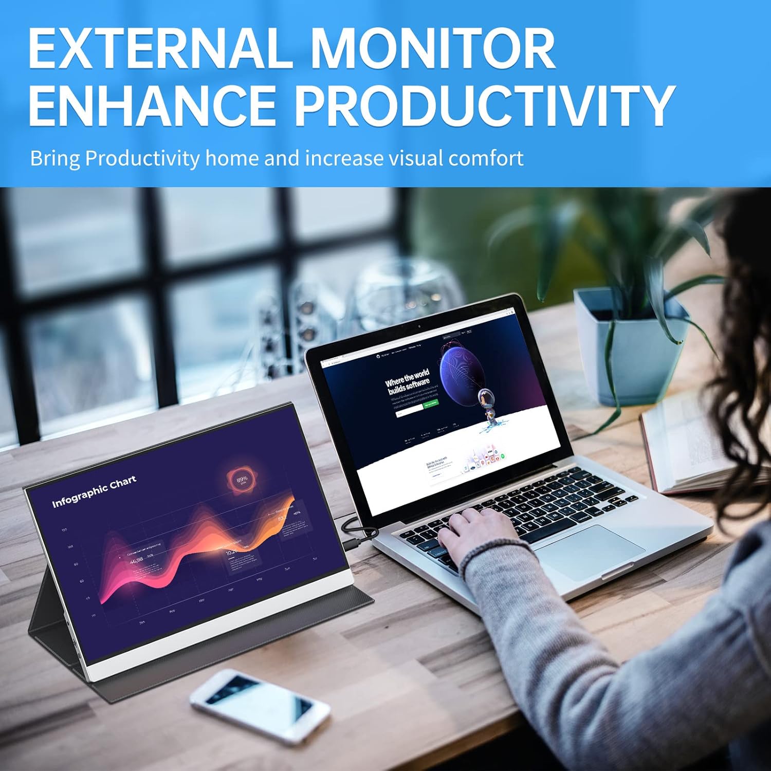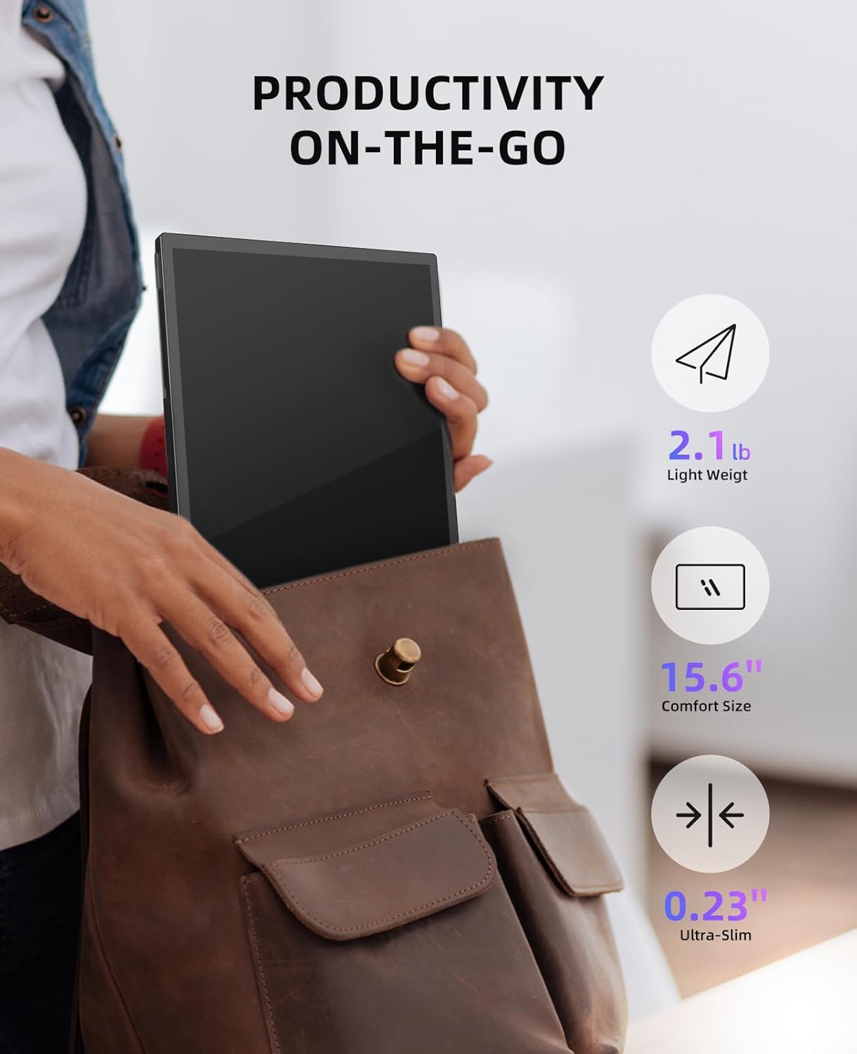 VisionOwl Portable Monitor-15.6 Inch Travel Screen FHD FreeSync Frameless USB-C Computer Display with Type-C HDMI Speakers for Laptop PC Mac Surface PS4/5 Xbox Switch, with Cover Stand, VESA Mountable