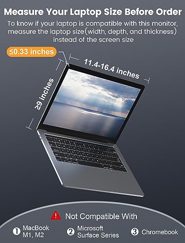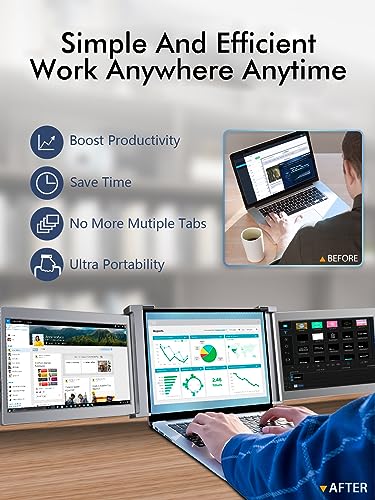 Teamgee Laptop Screen Extender, 12” Portable Monitor for Laptop FHD 1080P Glare-Free IPS Dual Screen, Works with Mac Windows Android Chrome Linux, Fits 13”~16.5” Laptops, Built-in Speakers & HDR