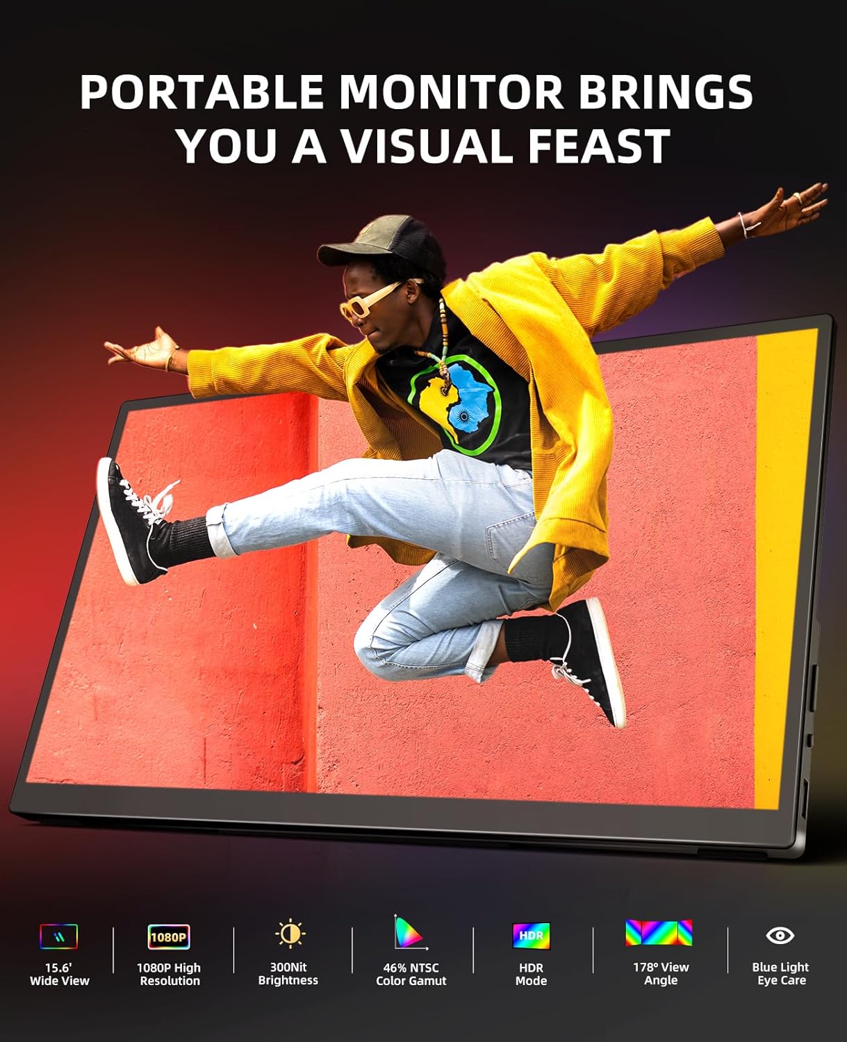 Portable Monitor Touchscreen 15.6'' 1080P FHD Laptop Travel Display USB C, HDMI Computer Monitor IPS Gaming Monitor w/Cover, HDR Eye Care Screen, Plug&Play Suitable for PC MAC Phone Xbox PS4/5 Switch