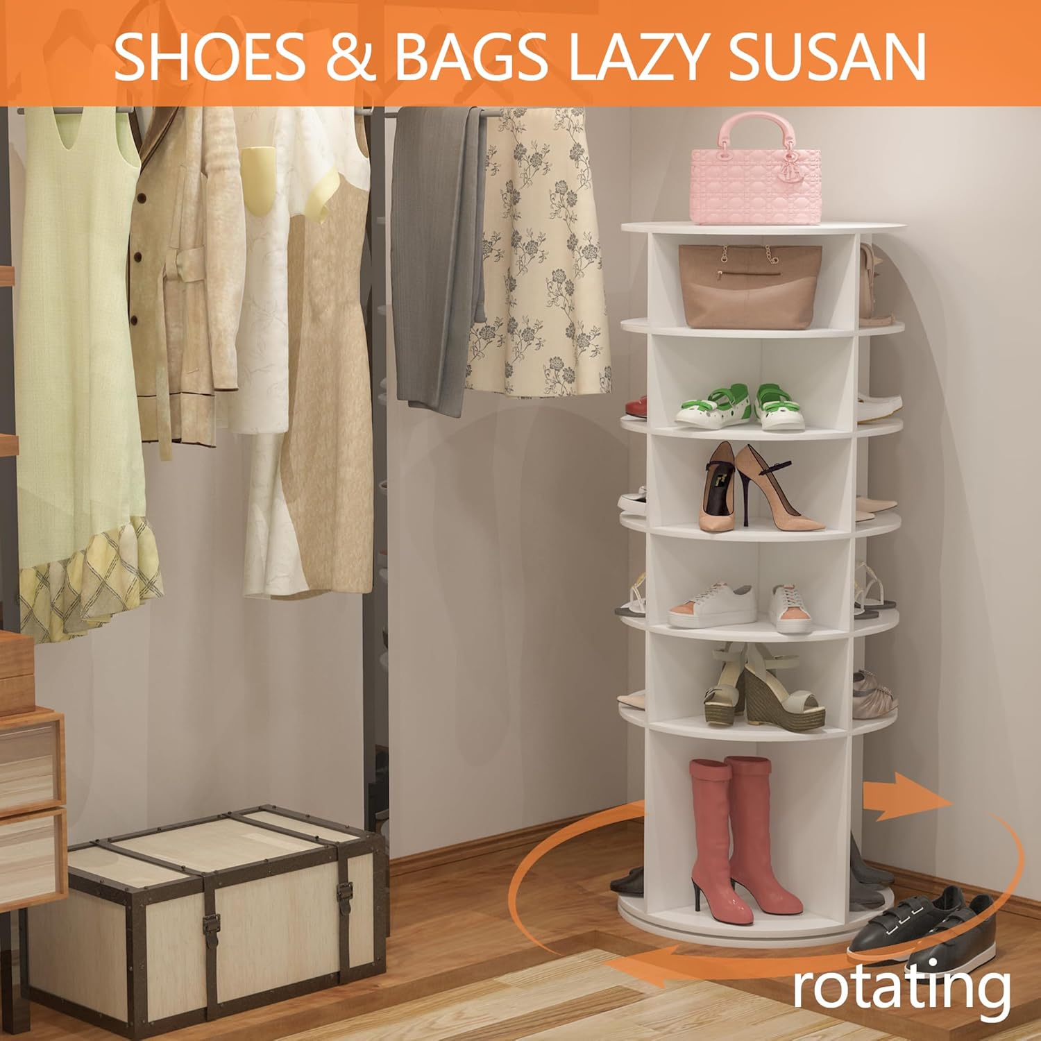 Rotating Shoe Rack Tower,6 Tier Spinning Revolving 360 Shoe Rack Display Storage Round Carousel for Vertical Handbag Rotate Shoes Corner Closet Organization Arrangement
