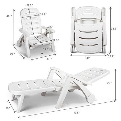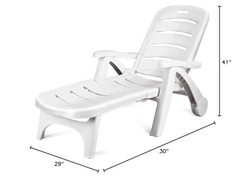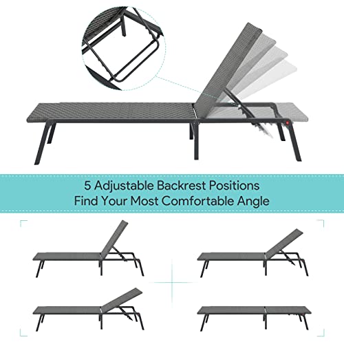 Giantex Patio Chaise Lounge Recliner on Wheels, Folding Deck Chair with Armrests, 5 Adjustable Positions for Poolside, Yard, Garden Rolling Outdoor Lounger Sunbathing Beach Chair(2, Gray)