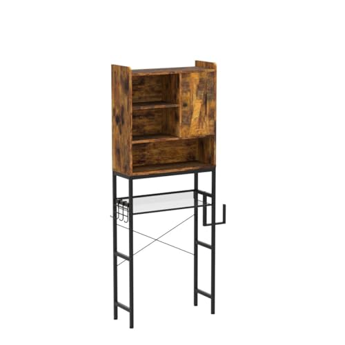 AWQM Over The Toilet Storage Cabinet, Bathroom Cabinet Organizer with Adjustable Shelf, Freestanding Space Saver Toilet Stands with Door, Paper Hook, Multifunctional Bathroom Toilet Rack, Rustic Brown