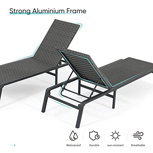 NicBex Outdoor Patio Chaise Lounge Set of 2 with Wheels,1 Table and 5 Adjustable Position,Outdoor Furniture Sets, Beach Reclining Lounge Chairs Set of 2 for Balcony,Yard,Pool or Backyard,Khaki
