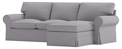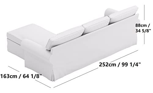 Sofa Cover Only! Dense Cotton Ektorp Loveseat (2 seater) with Chaise Lounge Cover Replacement Is Made Compatible for Ikea Ektorp Sectional 3 Seat (Three) Sofa Slipcover. Cover Only! (Cotton White)