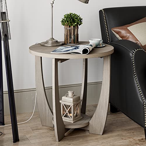 Rustic Farmhouse End Table with Storage Shelf, French Country Accent Side for Family, Dinning or Living Room, Small Spaces, Modern, Round, Vintage Blue Finish, Curved Leg