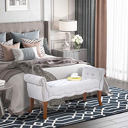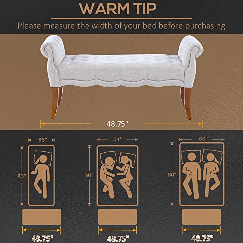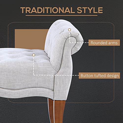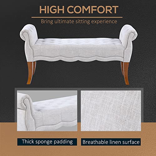 HOMCOM Traditional Style End of Bed Bench, Upholstered Entryway Bench with Button Tufted and Rounded Arm, Light Gray