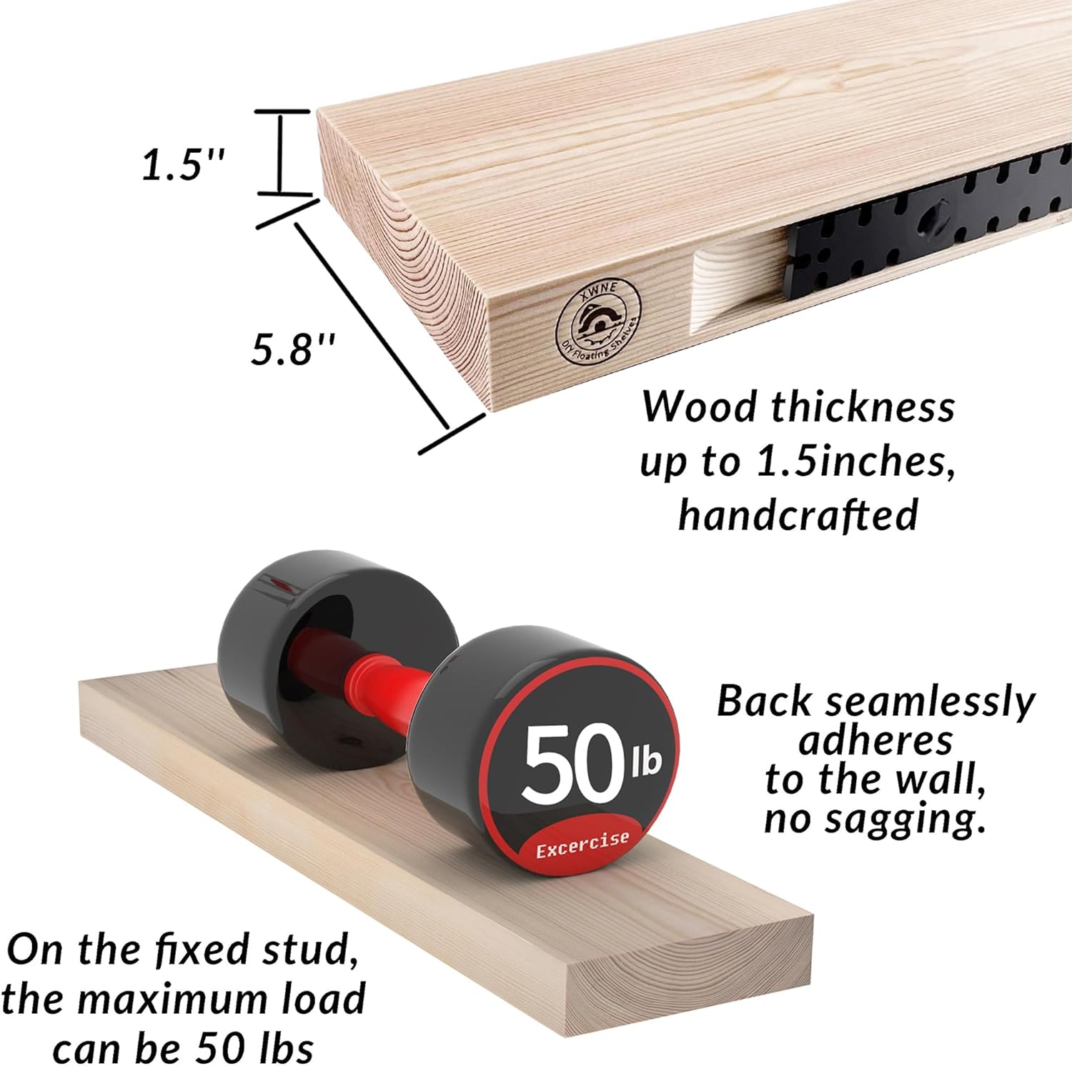 Wood Floating Shelves,24 inch Rustic Wood Wall Shelves for Bathroom Living Room Bedroom Kitchen Farmhouse Laundry Room Set of 2,Handmade-Thickened Wall Shelf,DIY-Unfinished-No Stain