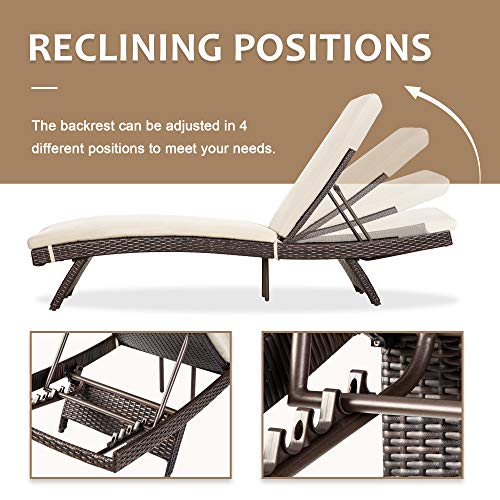Pamapic Patio Chaise Lounge Set 3 Pieces,Patio Lounge Chair with Backrest and Cushion & Suncast 33 Gal Hideaway Can Resin Outdoor Trash with Lid, 33-Gal, Brown