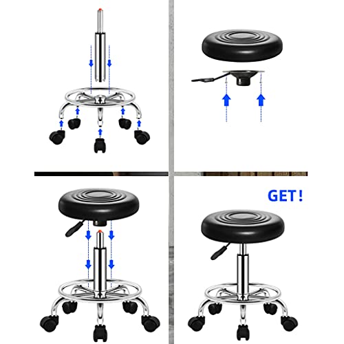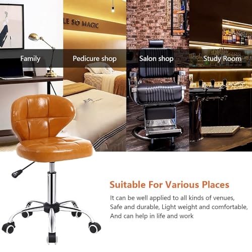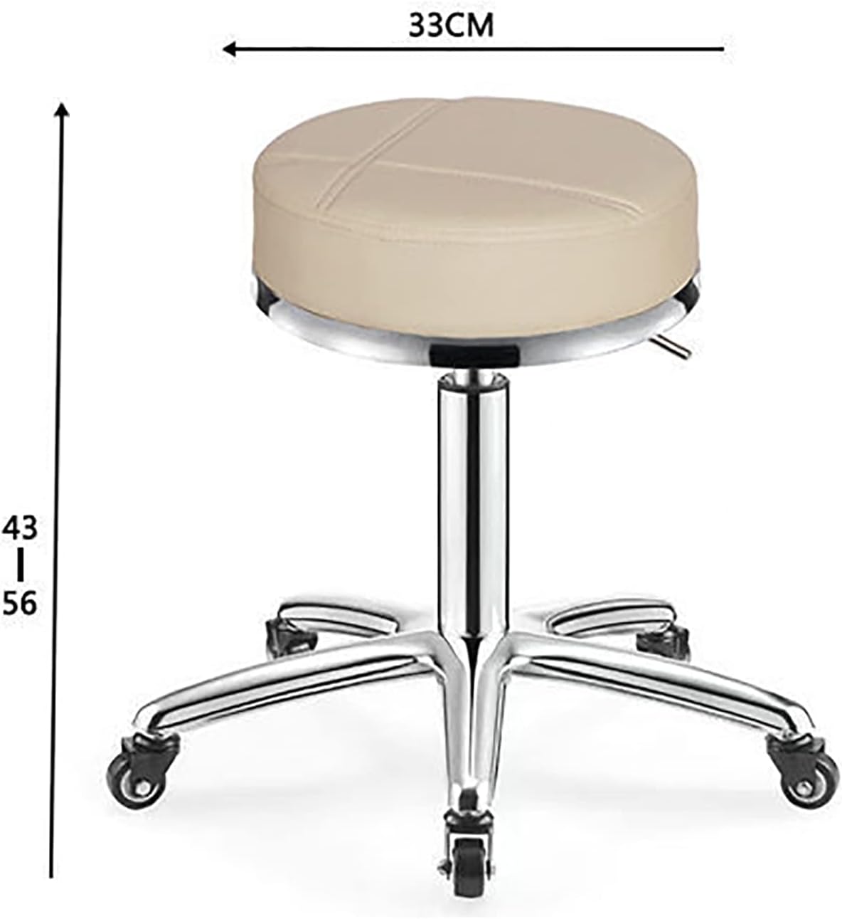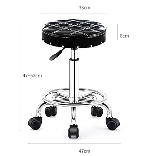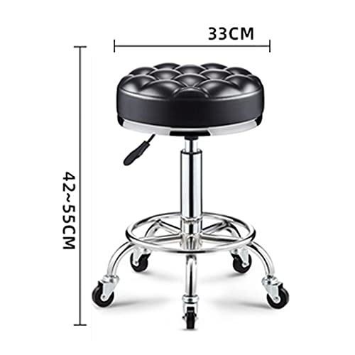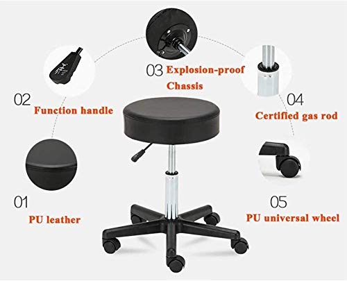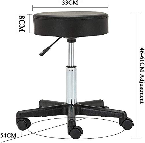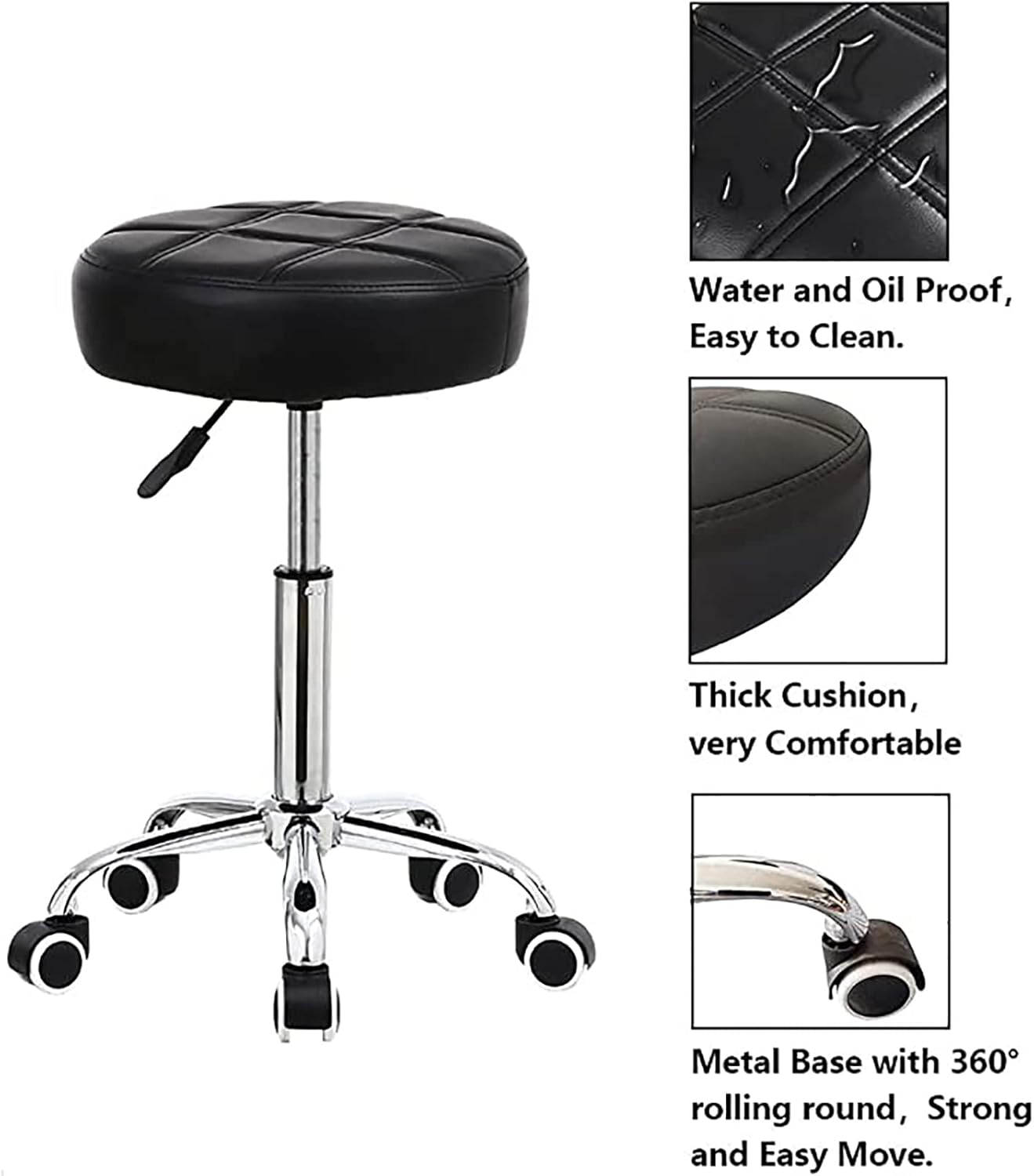 Round Rolling Stool Beauty Stools Chair Adjustable Height Chrome Steel Bar Stool Round Cushion, Salon Rolling Stool Swivel Chair On 5 Wheels, PU Leather Counter Stools Shop Work Stool with
