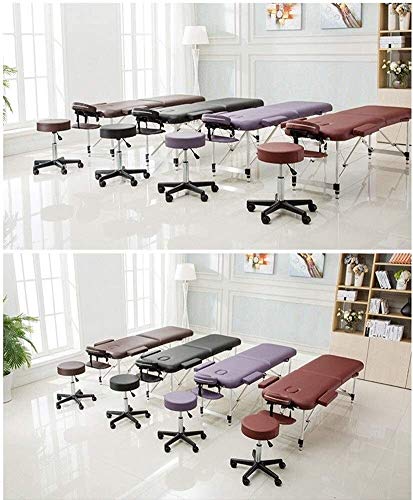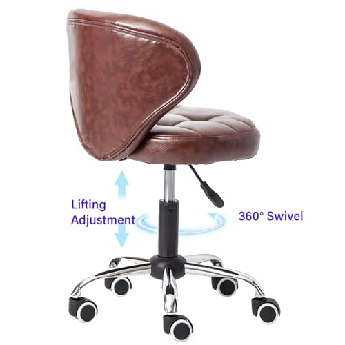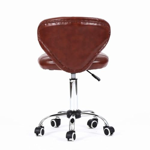 Vintage Rolling Swivel Massage Salon Stool with Wheels and Thicker Seat Padding, Adjustable Height PU Leather Bar Stool Office Shop Stool with Footrest Hairdressing Brown(Brown1)